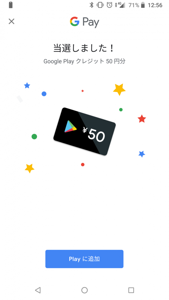 2018年12月31日23時59分(日本時間)までが抽選対象期間のようですので、まだGoogle Payを使っていないという方は、これを機に使ってみてはいかがでしょうか。わりと当たりますよ(当たらなかったらすみません)。