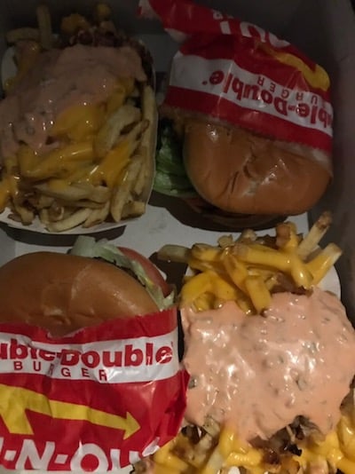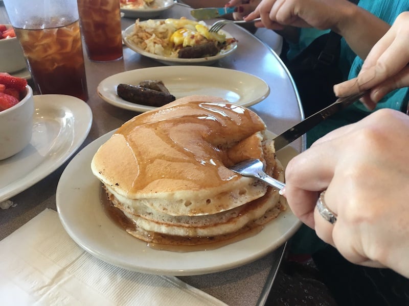 あんまりにもアメリカらしいご飯がなくてちょっとがっかりしていた矢先…ジャンクフード、大きなパンケーキ、大きなドーナツもありました! 期待通りのアメリカンフードです。