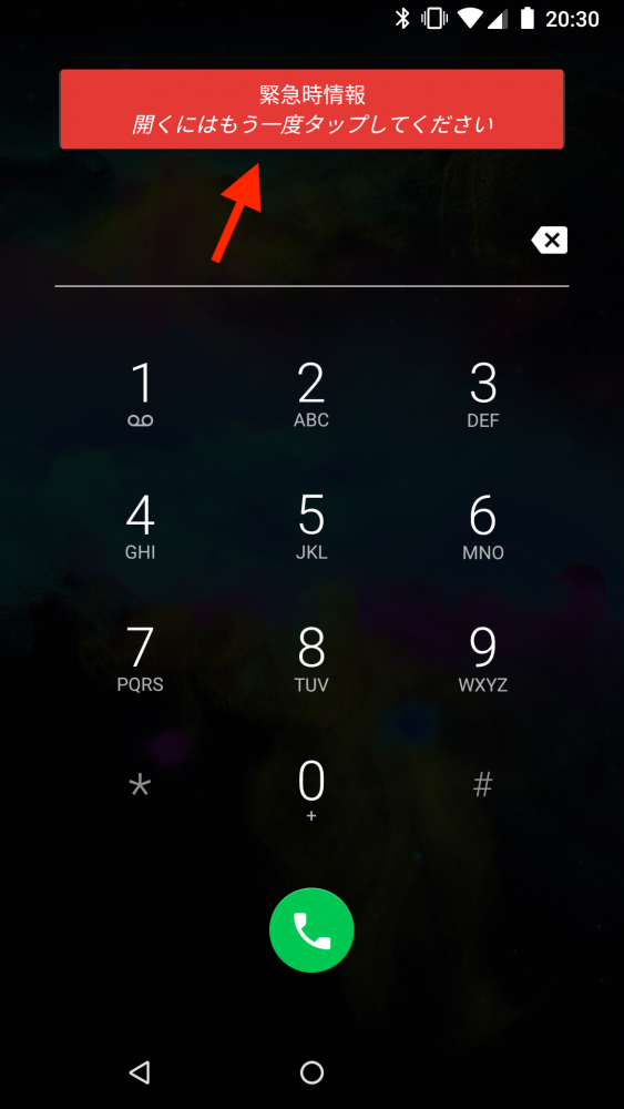 3.「緊急時情報」の枠が赤くなるので、再度タップ