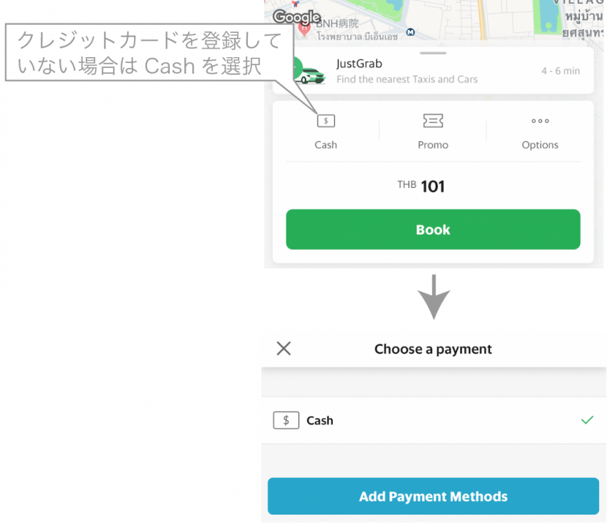 - クレジットカードを選択していない場合は“Cash”を選択