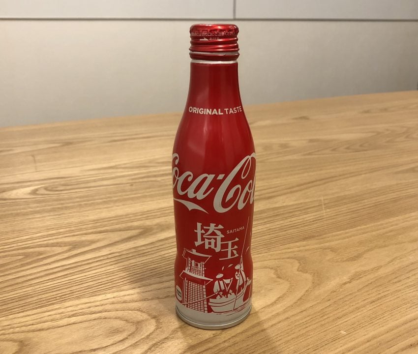 そんなコカ・コーラに地域限定のスリムボトルがあるそうです。そうなると自分の地域の限定ボトルが気になるところ。我がトリニティは埼玉県新座市にあるのですが、会社の近くの自動販売機で売っていました! デザインはこちら。