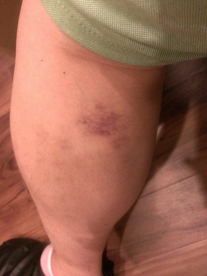 初めて肉離れになった時は草野球の試合中で、二塁ベースを回ってハーフウェイでブレーキをかけた時にカクッときてそのまま歩けなくなり、初期の処置もしっかりと行わなかったせいで、そこそこ重傷になって完治まで1年くらいかかった記憶があります。この時は左腿でした。2回目は外野の守備中に左ふくらはぎ。3回目がスライダーを流し打った時に左腿、4回目は走り込み中に左ふくらはぎ(下の画像)。