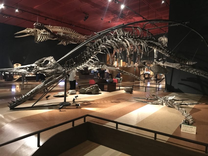 まず、入館してすぐ目につくのはこちらの『フタバサウルス・スズキイ』の見事なまでの化石です!