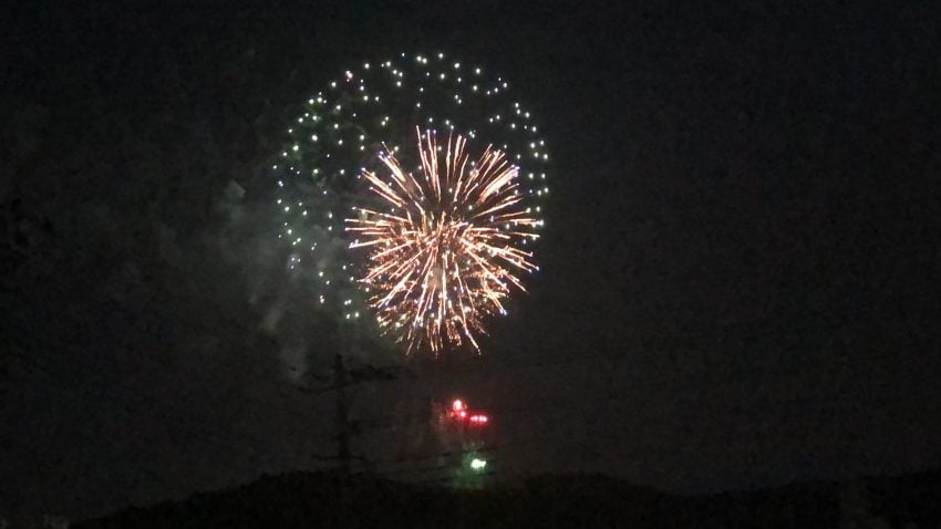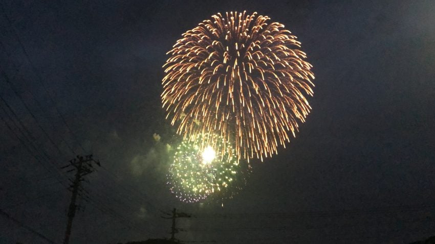夜になると仙元山見晴らしの丘公園を舞台に、約2,000発の花火が打ち上げられます。夜は日中の暑さも和らいで、夜風に吹かれながら見上げる花火はとても綺麗でした。