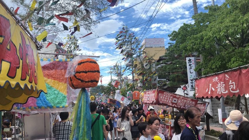 七夕祭りは1949年から開催されている伝統的なお祭りでして、和紙で作った色鮮やかな七夕飾りが町を彩ります。神輿や踊り、音楽隊が町を練り歩き、露店も町内にたくさん出店されています! 楽しさと暑さも重なりお酒が美味い!!