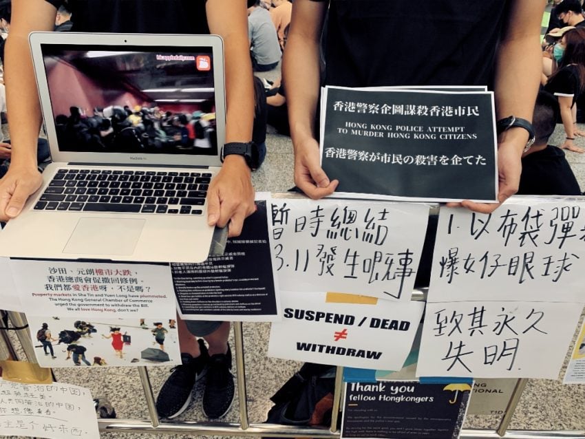 今日はちょうど中国深圳へ出張に行く際に、香港空港を経由して中国本土へ渡るいつものコースを進んでいました。午後からミーティングをしたかったので、早朝便で出発し香港空港にはお昼過ぎに到着しました。香港がここ最近揺れ動いていることは知っていましたが、通常の私のルートでは空港から直接車に乗って中国本土まで行ってしまうので、街中を経由することがないため、その動きを見ることはないかなと思っていました。