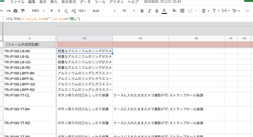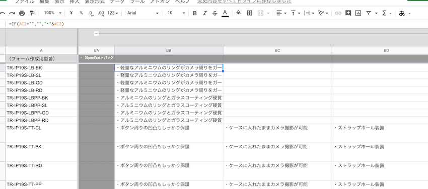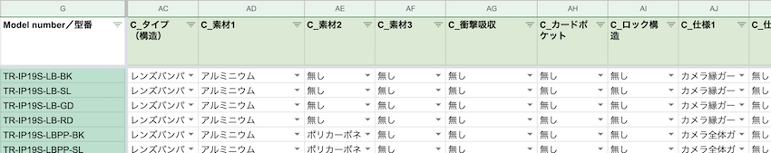 私たちは、開発中製品の仕様や特徴をスプレッドシートにまとめて管理しています。