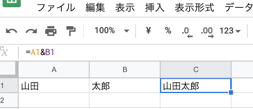 エクセルを使ったことのある方なら、一度は「&」を使ってセルに書かれた内容をくっつけたことがあるのではないでしょうか。たとえば、セル:A1 に名字(例:山田)、セル:B1 に名前(例:太郎)が入力されているとき、セル:C3 に「=A1&B1」と入力すると「山田太郎」と表示させることができます。※ CONCAT 関数や CONCATENATE 関数を使ってデータ結合することもありますが、今回は省略します。