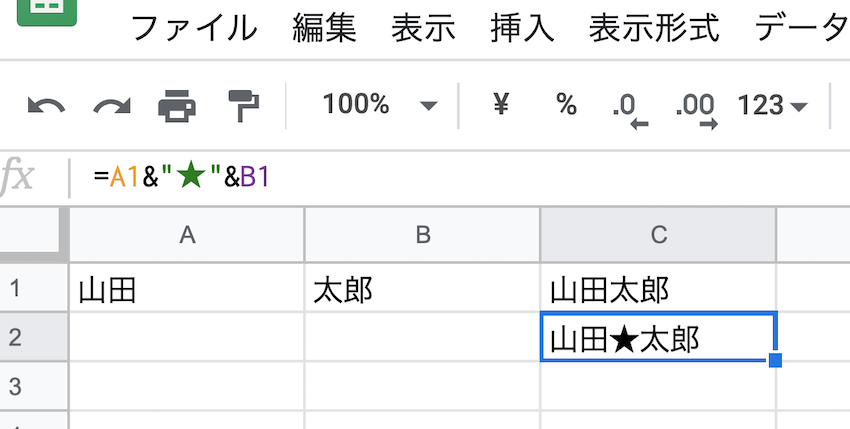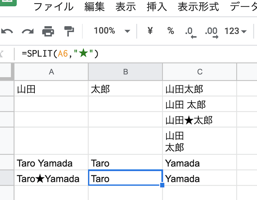 この半角スペースを「★」に変えてみると、「山田★太郎」になります。