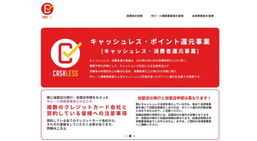 というのは、本制度の対象になるためには事業者IDというのが必要で、これによって当社がこの制度の対象となる中小企業および小規模事業者(5%還元)か、フランチャイズチェーンの加盟店(2%還元)なのか、はたまた対象外なのかを区別します。さらに我々のようにいくつかの決済手段を提供している場合には、それぞれにおいて加盟店IDなるものが必要になります。実際に、本制度の対象となり消費者が還元を受けるためにはこの加盟店IDに紐付いている決済方法でなければならないのです。