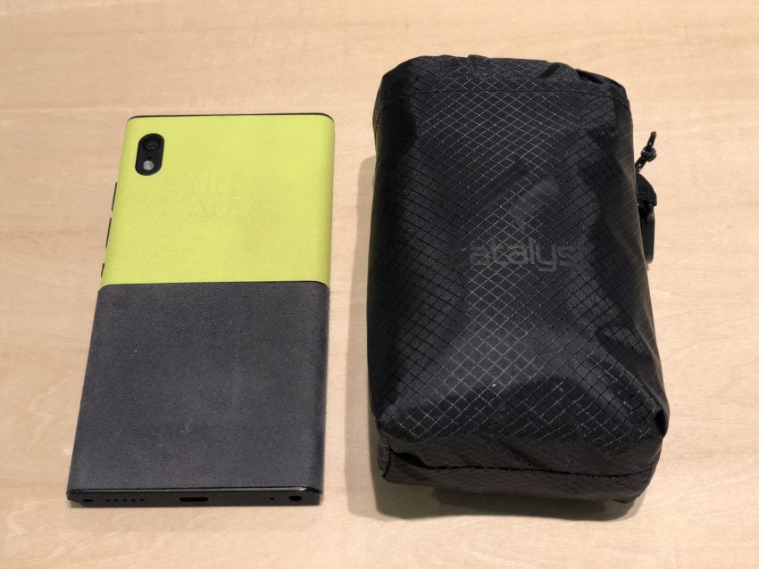 まずは製品が手元に届いてびっくり! パッカブルなのでとても小さく畳まれた状態で届きます。NuAns NEOとちょうど同じくらいの大きさです(手のひらサイズ)。もちろんこれだけ小さくなるということは、超軽量の170gです。軽量故に生地は薄く、袋を開いたときはシワシワですが、落ち着いてください! 時が解決してくれます。