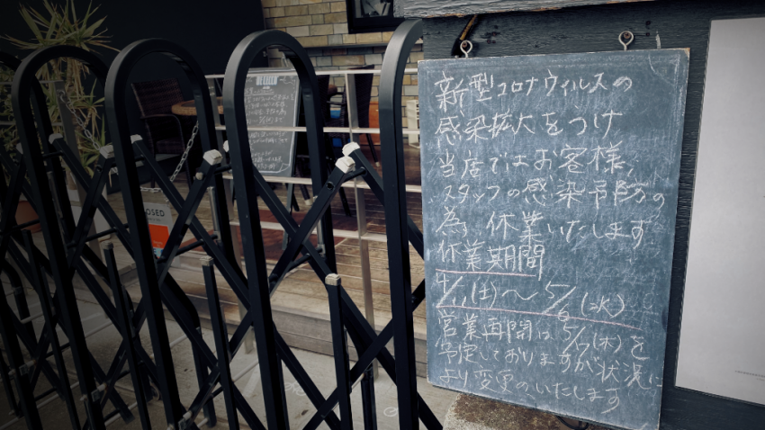 当社運営のレストラン「トリニータ」では、来店されるお客さんの安全や従業員・アルバイトの安全を考え、さらに急激に減っている来店者数を鑑みて、緊急事態宣言の終わりである5月6日までの休業を決めました。緊急事態宣言によりなるべく接触する機会を減らすという施策にも協力していくという意味もあります。
