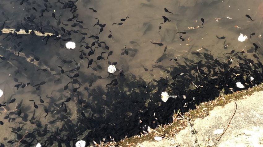 おたまじゃくしです…もの凄い数ですよね。適当にいうと推定10万匹はいます。適当です。