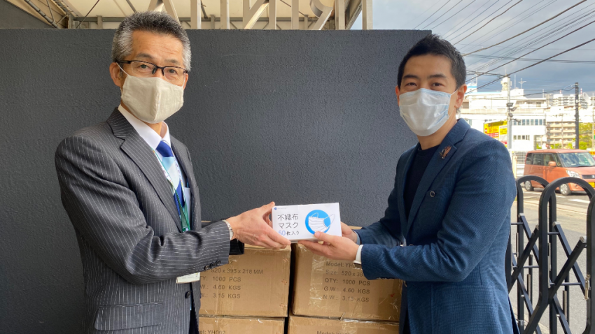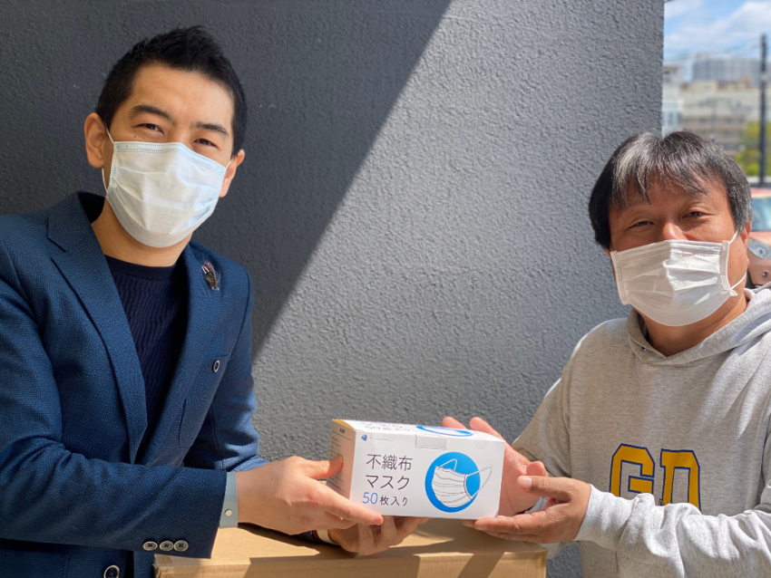 以前にマスクを急遽輸入し、社員向けとトリニータでの配布など、限られた数量の中で地元に還元したつもりです。その後に、もう少し多めに手に入れることができたので新座市および新座で活動されているNPO法人に寄付しようということで、マスクを発注して入荷したらお渡しする旨を先方に伝えていました。