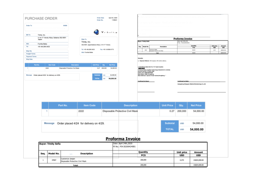 今回、当社から中国工場への注文書である「Purchase Order」と工場からの注文請書としての「Proforma Invoice」を掲載します。通常はこういうものは開示しませんが、今回は原価をうたうということもあって特別に開示しておきます。工場との個別契約になるため、価格は他の顧客と異なる可能性が高いので工場名はここでは塗りつぶしています。