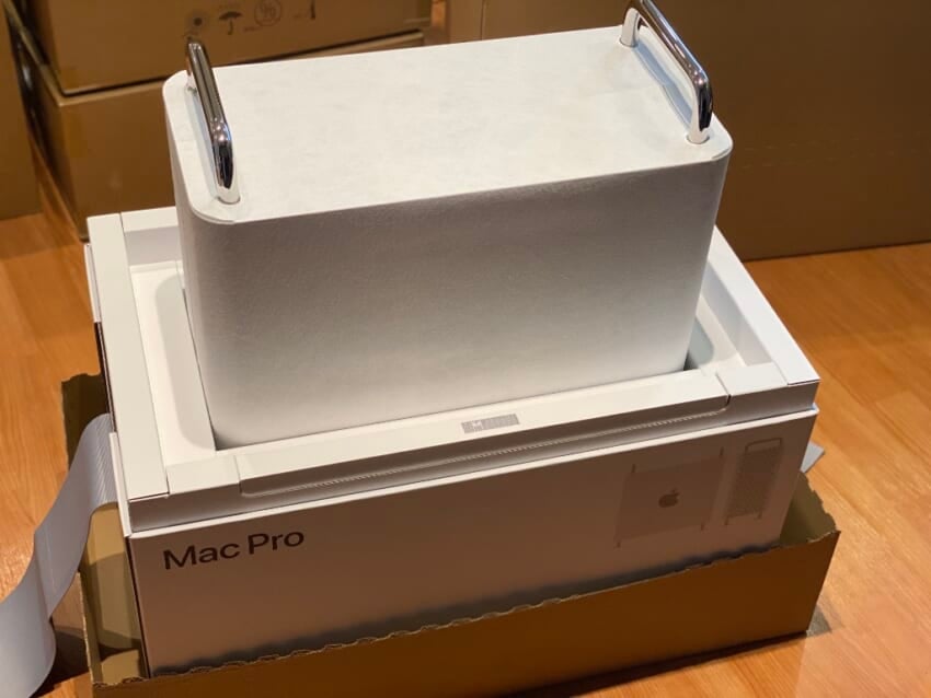 実際届いてみると、思っていたよりも大きいし、重いです。そもそも配達されてくる箱が33kgもあって、梱包の仕方も尋常じゃない作りになっています。さらに、このMac Proはフォトブックまで付いていますし、キーボードやトラックパッドもiMac Proとは異なるよりダークな仕上げになっています。とても芸が細かい作りに感動です。