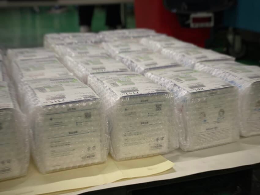 原価マスクはこのようなカタチで入荷してきて、これを外観チェックしながら、重さを計量してから、出荷を行なっています。この重量検品をなぜしているかは別の機会に記事にしたいと思います。