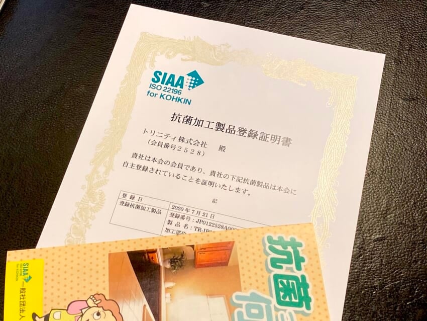 当社としてもしっかりと基準に合格したものを厳しくテストし、つい先日、抗菌機能、安全性、耐久性の検査、品質維持の取り組みなどを申請し、無事に審査を通過、SIAAへの入会が認められました。
