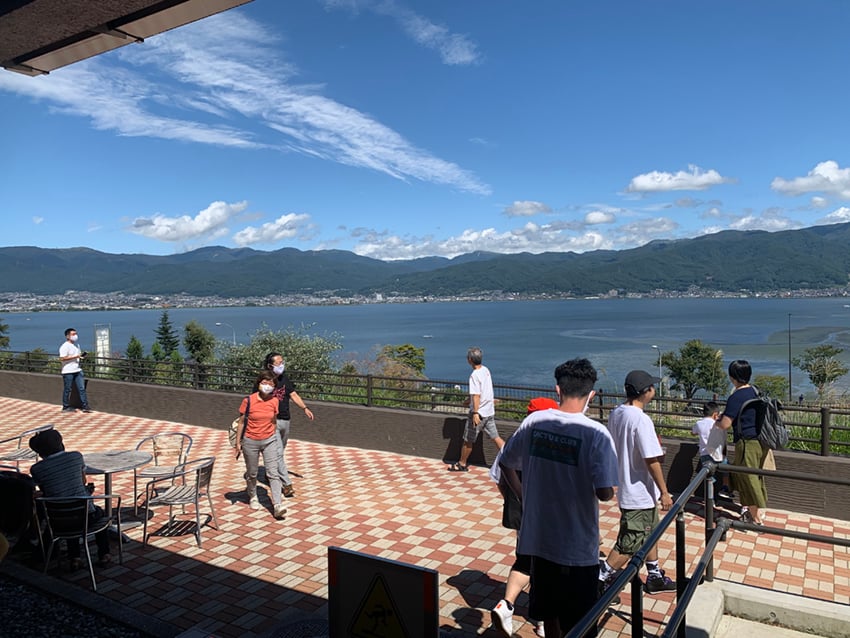 そういえば長野県に訪れたことは何度もあるけれど、諏訪湖って実は今回が初めてだったんですよね。なので、思ってたよりも海沿いに近い? というかバカンス感強いなーというような綺麗な景色で驚きました。風光明媚という言葉がまさにピッタリな場所でした。