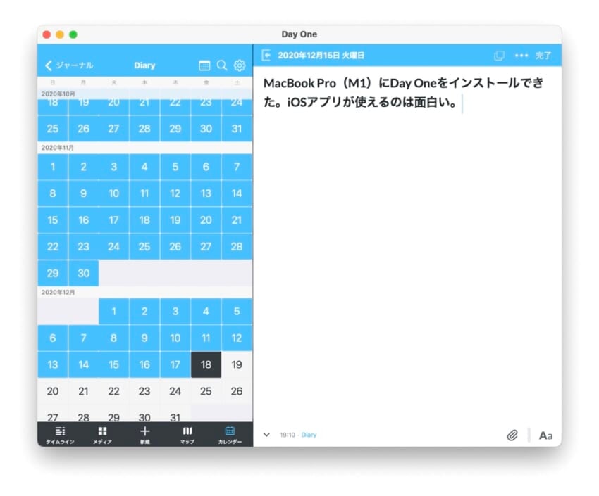 ちなみに、このテストをしていた後に、Day Oneアプリはアップデートがされて、ネイティブ対応しましたので、わざわざiOSアプリを使う必要がなくなりました。早く対応してくれてるところは良いですね。