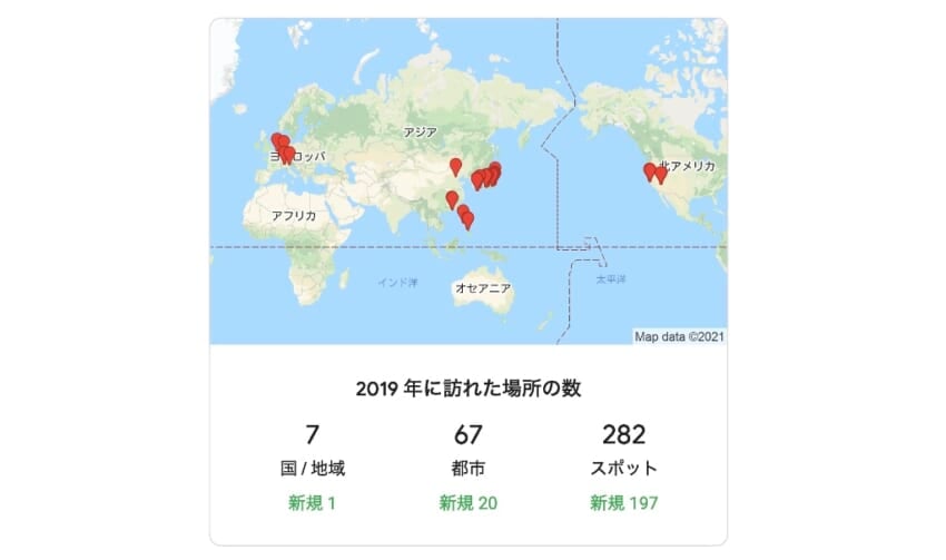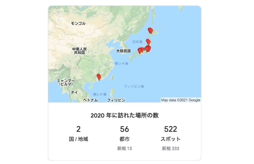 ちょうどGoogleからメールが来て、2020年を振り返った軌跡を紹介してくれましたので、久しぶりに見てみました。2019年と比較してみると如実にその差が分かります。