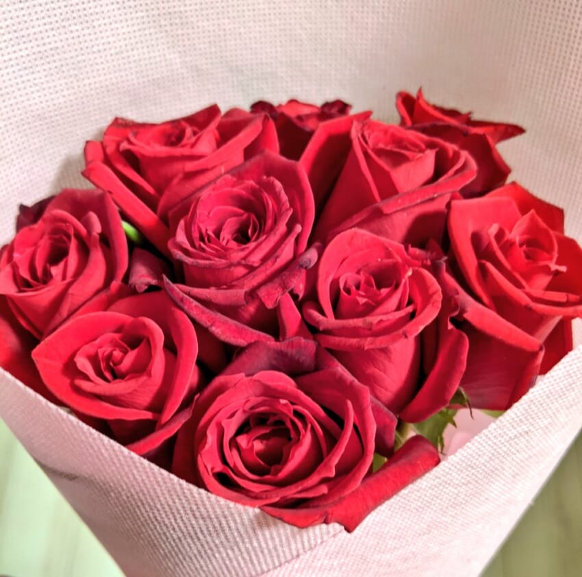 気がつけば結婚6年目を迎えまして、出会った頃から数えると10年という節目でしたので、結婚記念日にサプライズで薔薇の花束を妻にプレゼントしてみましたフェイです(10年なので10本)。