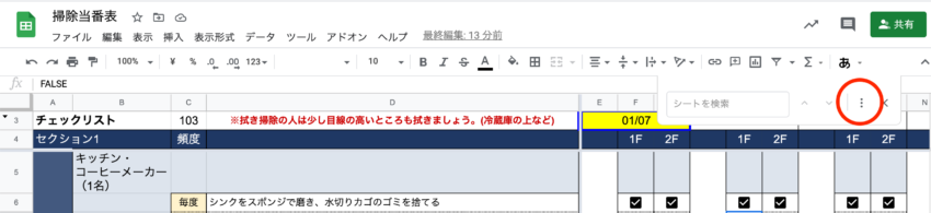 しかし、ここで問題になるのは、1年分✓を入れたチェックボックスをすべてクリアにしなければならないということです。ざっと数えてみたところ、1年分の掃除当番表には、チェックボックスが約1,400個ありました。1,400個もチェックボックスの✓を外していくなんて…げんなりしてしまいます。