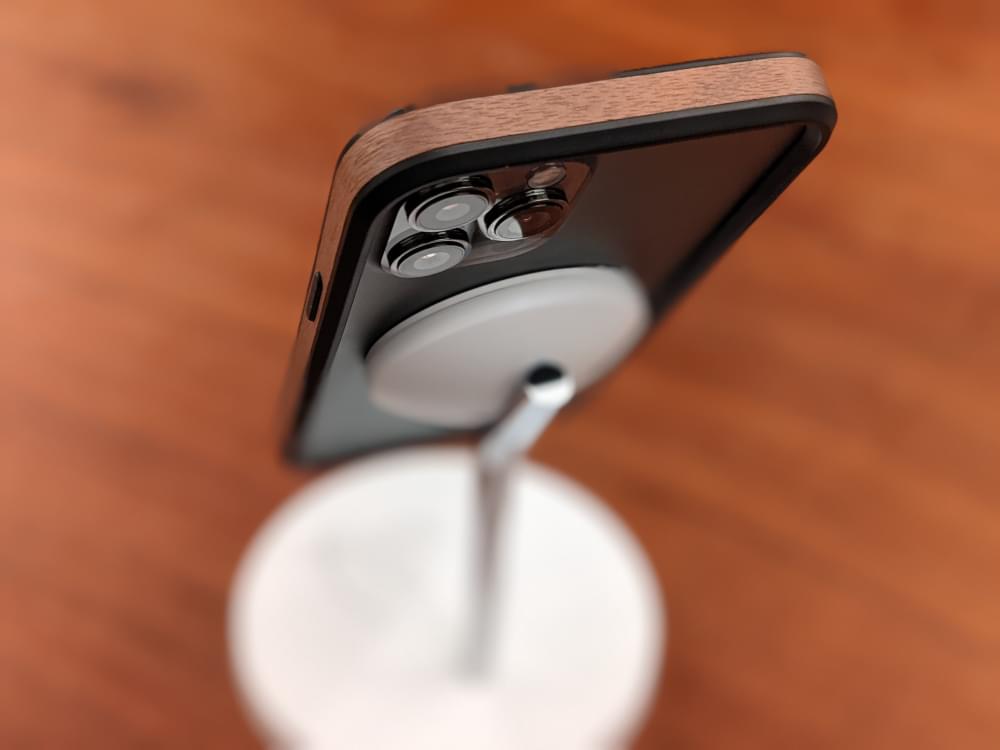 通常のケースではiPhone 12シリーズの特長であるマグネット式ワイヤレス充電機能が使えなくなります。当社でも「MagSafe対応アクセサリー」はそれなりにたくさん出していますが、バンパーケースであるALINEもMagSafeアクセサリーをそのまま使用することができます。なお、唯一iPhone 12 mini用のカードウォレットだけがかなりサイズが大きいため使うことができません。