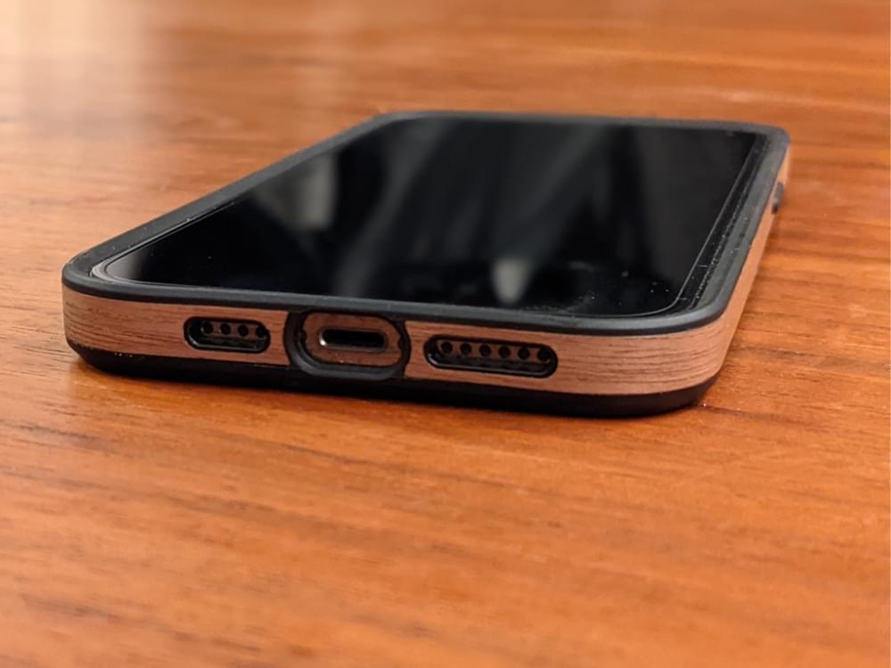 周囲だけを覆っているので軽いというのも大きなポイントとなります。元々、サイズが大きいので重量も最高峰だったiPhone 12 Pro Maxが少しだけ軽く感じました。握ったときのグリップ感はとても良いですし、テナージュがしっかりと生の素材の触感を提供してくれますので、とても心地よいです。