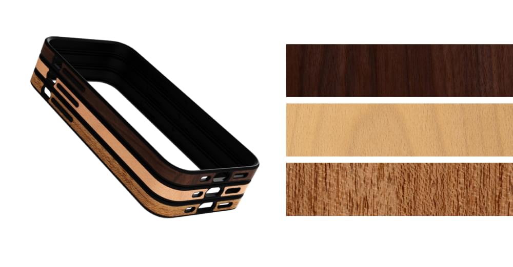 テナージュなどは元々は当社開発のスマートフォンNuAns NEOから使い始めた素材ですが、本物の木を使用した有機的な手触りは本当に素晴らしいです。