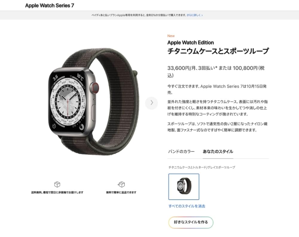 この例も含めて考えてみると、まず初めてApple Watchを購入する人にとってはApple Watchとバンドが何かしら紐づいているべきだと思います。しかし、前回のApple Watch 7購入時にも書いた通り、すでに第7世代まで出ているのですでにバンドを持っている、買い増しているという人もいると思います。バンドとの組み合わせが無数にあることで在庫が偏るという問題もあるので、オンラインだけでも良いのでApple Watchケース本体だけ購入できるオプションを用意してもらえると良いのではないかと思います。
