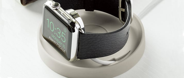 自宅で充電する際に、単に充電器からケーブルを出して充電するというのは見た目があんまり良くないので、今回はApple Watch用充電トレイBluelounge Kostaを使用することにしました。ちゃんと居場所を作ってあげることが、デバイスを美しく収納するコツです。