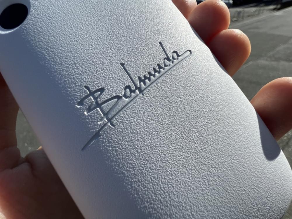 まずは、外観からみていきます。今回はホワイトをチョイスしました。BALMUDAのロゴがエンボス加工されていて格好良いです。