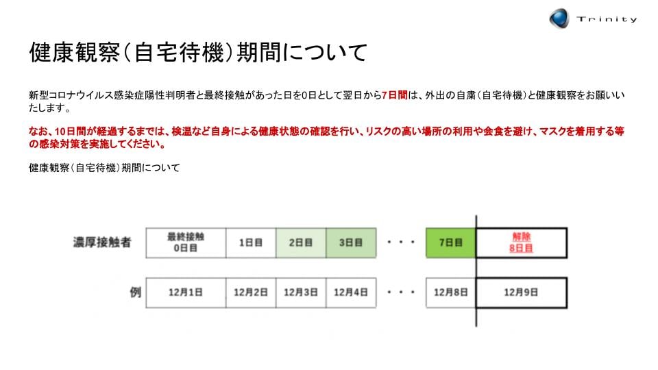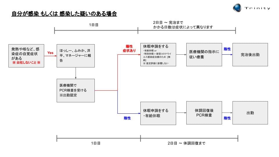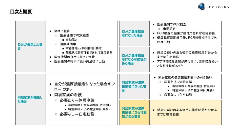 冒頭にも書きましたが、現在主流のオミクロン株の感染力の高さからすると、必ずどこかで何かしらの対応を迫られることになると思います。その時に、トリニティ全体として冷静に、正しい対応をしていけるように策定しました。なお、全体ミーティングで質問などももらいつつ反映させたりして、相当良いものができたのではないかと思います。