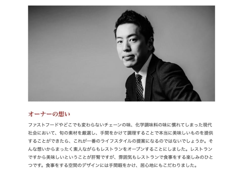 - 当時、志木駅前にあったレストランがとても美味しかったが、閉店するということでそのシェフに提案して一緒にレストランをやろうということになった。