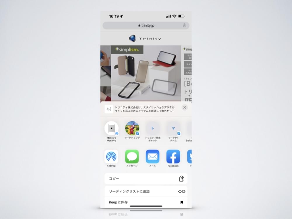 当社ウェブサイトの共有ボタンを押していただくと、その閲覧しているページのページタイトルとURLだけをシェアできるようにしてあります。正直、OSのシェアボタンを押すのと同じことなのですが、わかりにくい位置にあったり、この機能自体を知らなかったりしているので、ウェブサイト側にトリガーがあっても良いと思います。