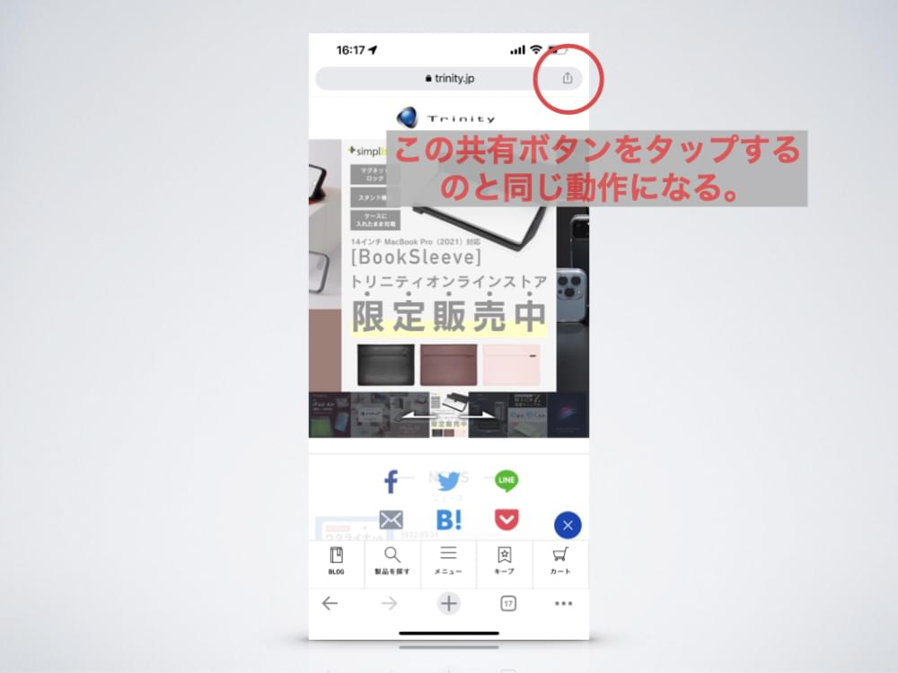 実はウェブサイト運営側が用意したシェアの方法以外にシェアをする方法をOSというかブラウザーが用意しています。しかも、その方がインストールしているアプリだったり、最近のOSではよく使っているものをシェアしやすいように配置していたりしますので、これが一番便利なのです。