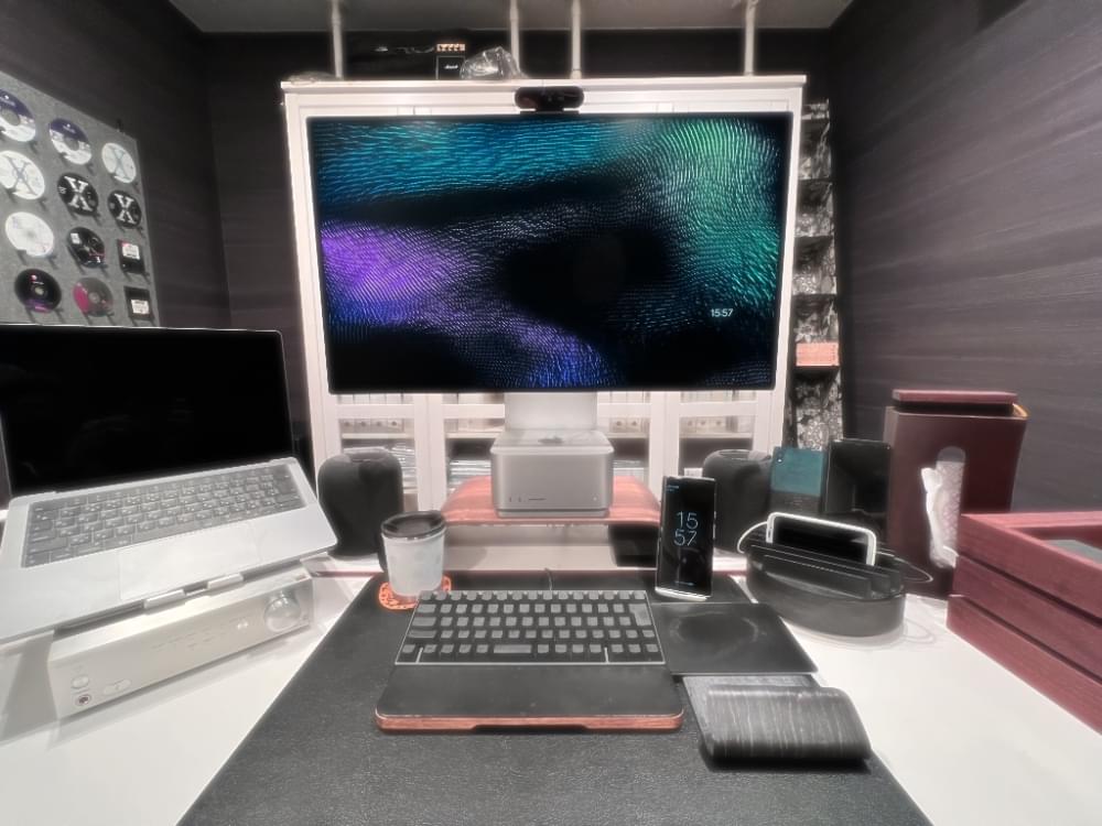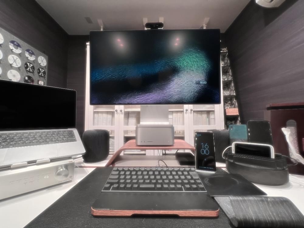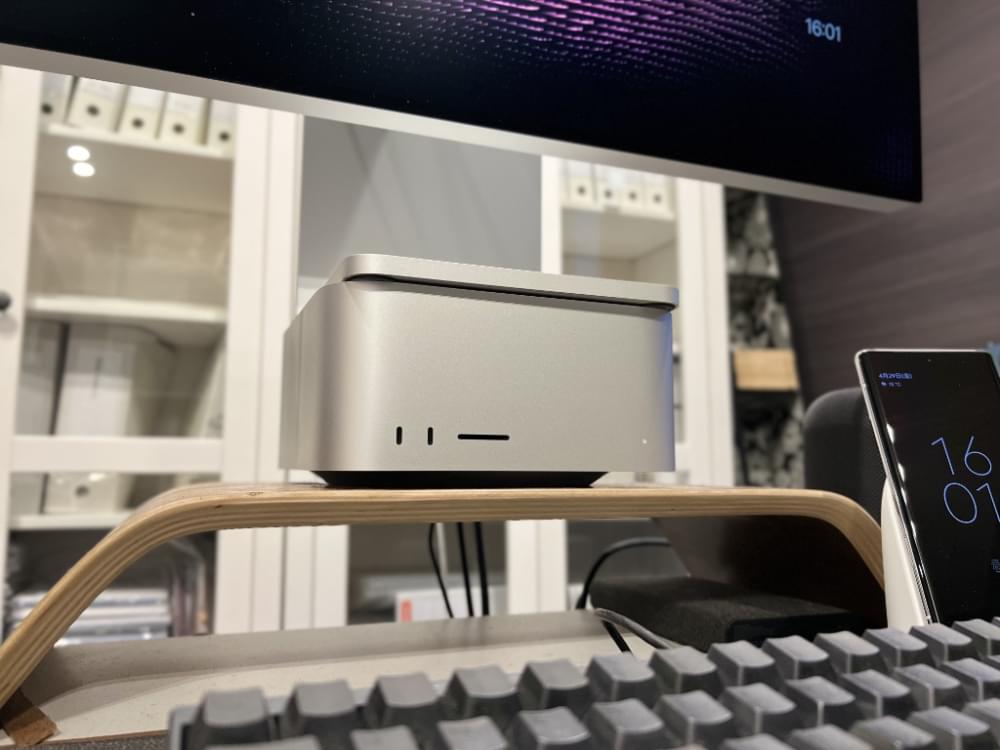 これはARではなく、本物のMac Studioを置いたところ。これだけ見ると、完璧な収まりです。