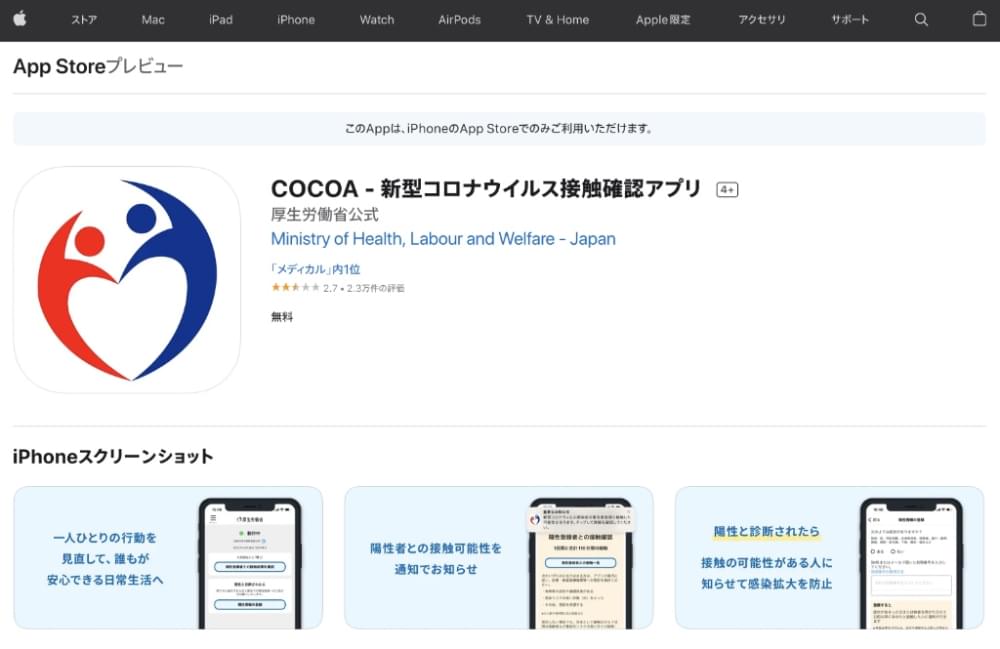 「COCOA – 新型コロナウイルス接触確認アプリ」をApp Storeで」より