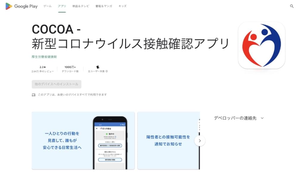 COCOA – 新型コロナウイルス接触確認アプリ – Google Play のアプリ」より