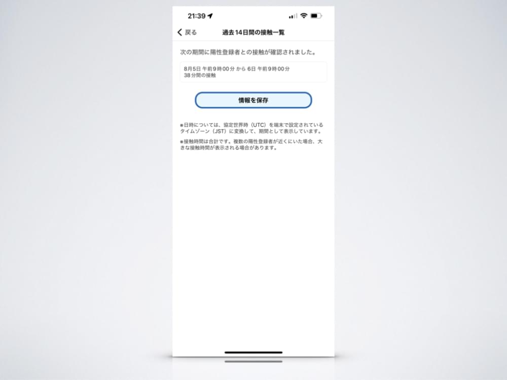 特にCOCOAアプリのみの接触通知は範囲が午前9時00分から翌日の午前9時00分までと24時間単位でしかなく、その中でのいつなのかがまったくわかりません。たとえば、上記の通知では8月5日午前9時00から6日午前9時00の間に38分間接触したと書かれていますが、詳細は一切分かりません。