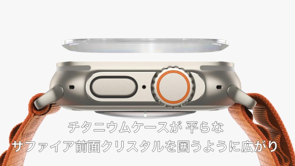 ケースについて。Apple Watch UltraはこれまでのApple Watchと比べてエッジが立っているデザインになっています。これは装着してみて、指でなぞってみるとよくわかります。歩いていて人に当てたら痛いくらいです。エッジが立っている部分を何か硬いものに当ててしまうと、このエッジが削れてしまう可能性があります。その意味で、ケースがそれらを吸収してくれますので、10万円を超えるものに対してのケースの金額はかなり安いと思います。