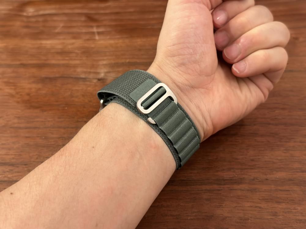 今回購入したApple Watch Ultraのバンドはグリーンアルパインループでした。正直、深く吟味するというよりも、早く購入プロセスを終えないと手に入れるのが遅くなるという焦りが大きかったので、これが良かったというわけではありません(笑)