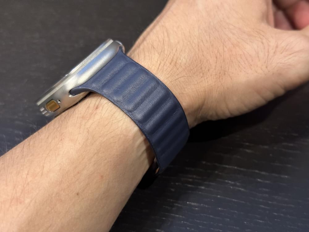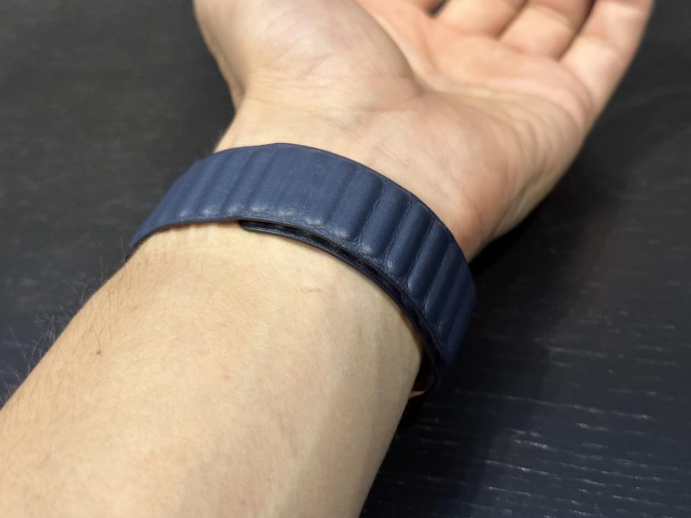 少しカジュアルすぎるということもあって、普段はレザーループと差し替えて使おうかなと思っています。Macを使うときなど、キーボードでタイピングをする際にも、内側に突起があまりない方が良いというのもあります。その意味で、ソロループ系に後で変更するかもしれません。