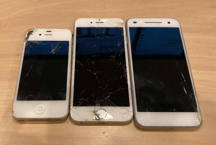 我が家のスマホ崩壊コレクションです。すべて所有者は同じです。
