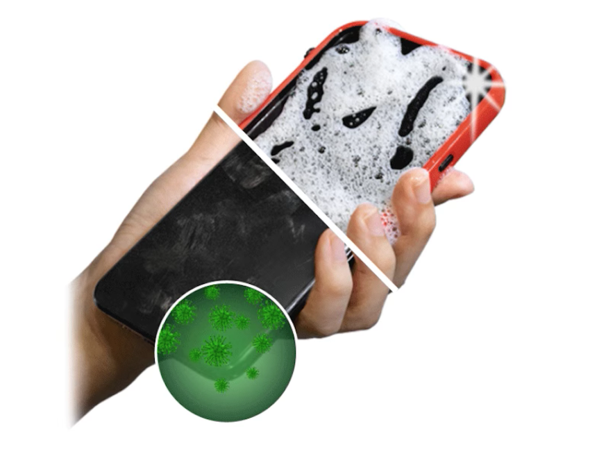 と、前置きが長くなりましたが、やっぱり今一番洗って欲しいのはスマホです。生活防水機能がついているとはいえ、スマホを洗剤をつけて洗うのはかなり勇気がいりますよね。