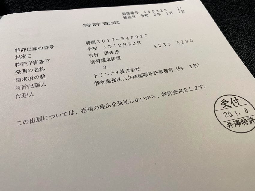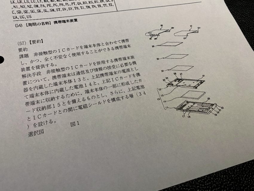 さて、今回私の元に送られてきた特許査定結果は、「この出願については、拒絶の理由を発見しないから、特許査定をします。」ということで、無事に特許権が認められた通知となります。なかなか面白い文ですよね。正直なところ、出願したことも忘れていたほどではあるのですが、NuAns NEOのひとつの特徴とも言える、カードが収納できる機構についてのものです。写真では一部を掲載していますが、特許番号で検索していただければと思いますが、そこに書かれてる特許内容はとても私が書けるものではありません。