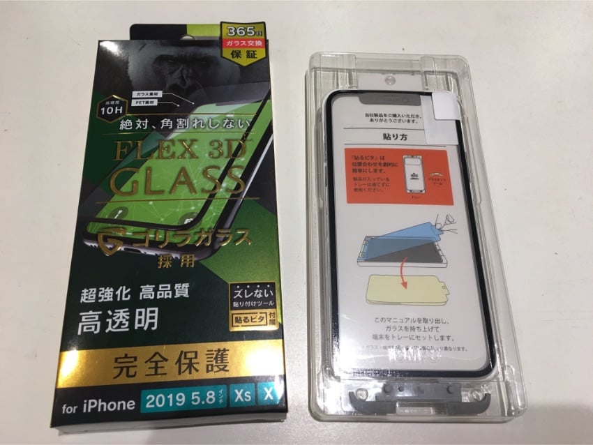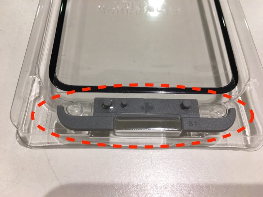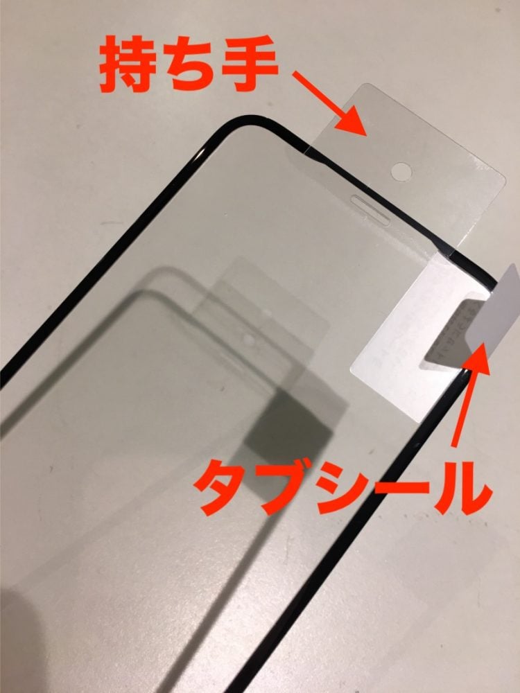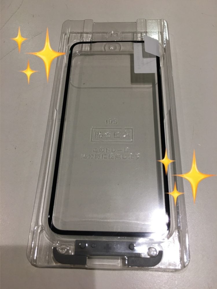 この部分でフィルムとトレーがしっかりと繋がっているため、端末のジャストな位置にフィルムが貼りつきます!!