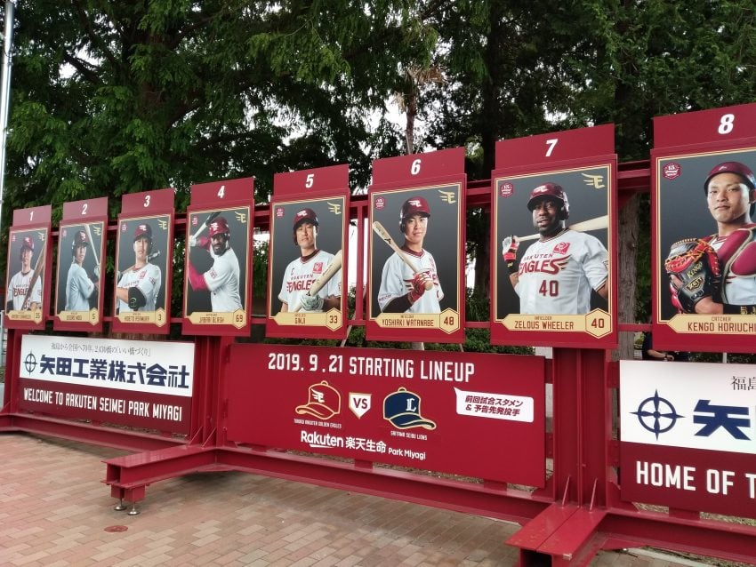 ゲートをくぐると、左側には前回試合のスタメンと当日の予告先発投手のパネルが並んでいます。この日の先発投手は、5月以来の1軍登板となる福井投手。今季3勝すべてを私が観戦したライオンズ戦で挙げているので、パネルからもイケそう感が漂っていました。