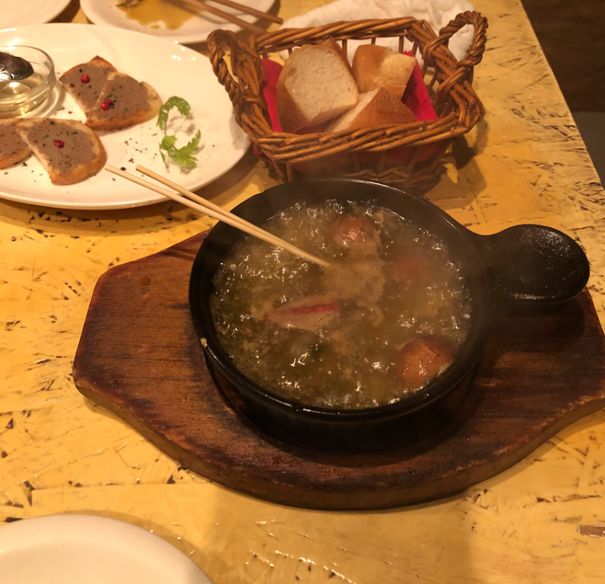 鉄板焼きメインのお店だったんですが、それ以外のおつまみもなかなかおいしくて、お気に入りのお店の仲間入りをしました。アヒージョはマグマのようにグツグツに煮えたぎっていてベロをやけどしてしまいましたが、塩加減もちょうどよくて、バケットを2回おかわりしてしまいました…。